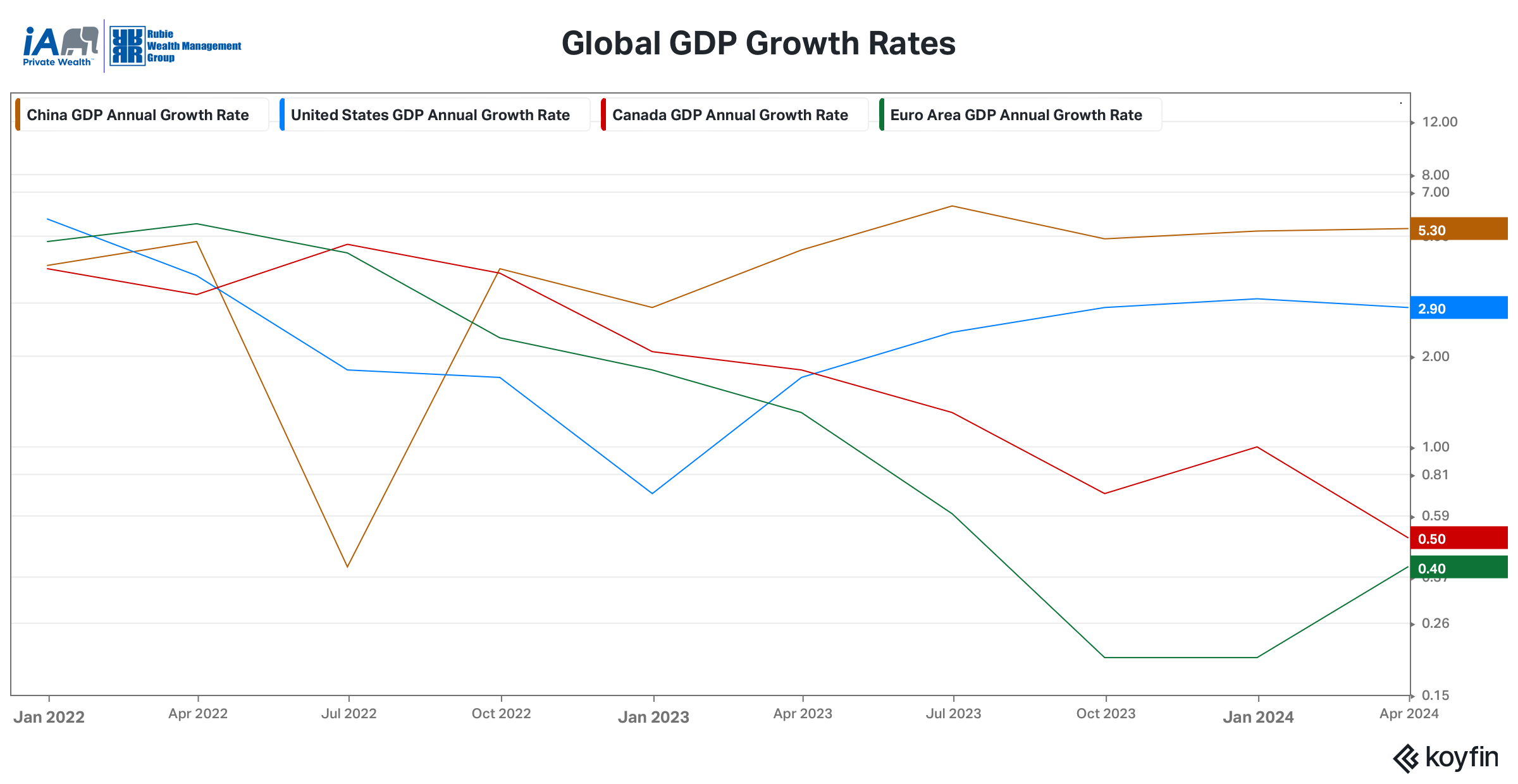 he U.S. economy continues to gradually slowdown from the fast paced growth that we saw in 2023. The economy generated 272,000 jobs in May, which is still robust, but the unemployment rate has also risen from 3.6% last May and is now 4%. During the first quarter of 2024, U.S. economic growth as measured by GDP lead the G7 (United States, United Kingdom, France, Germany, Italy, Canada, and Japan) economies at 2.9%. During the second quarter of 2024, most economists expect the United States to continue leading the G7 economies in economic growth, but GDP is expected to fall well below its current level. The U.S. Bureau of Economic Analysis will be releasing second quarter GDP data on July 31st. Consumer spending also slowed as retail spending grew merely 0.1% in May.  In the month of May, the highly influential U.S. inflation rate slightly declined to 3.3%. The rate of inflation was still too high for the United States Federal Reserve to lower the Federal Funds rate in their meeting last month.