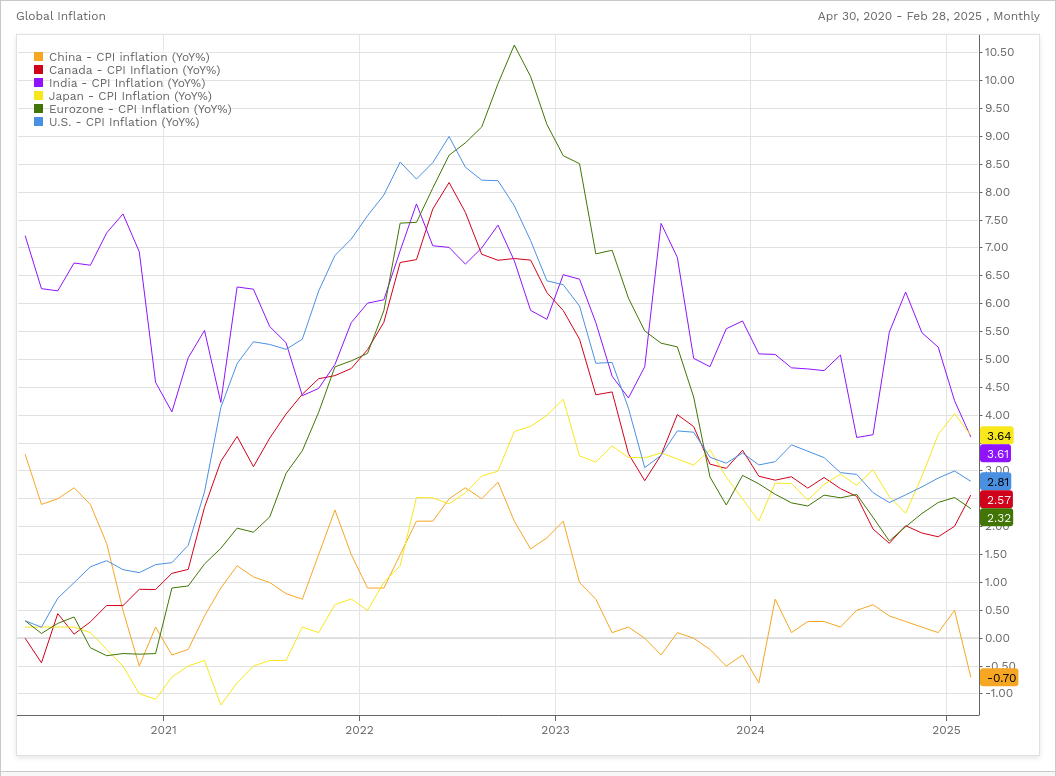 Global Annual Inflation Rates Prior to Trump Tariffs – 5 Year Chart