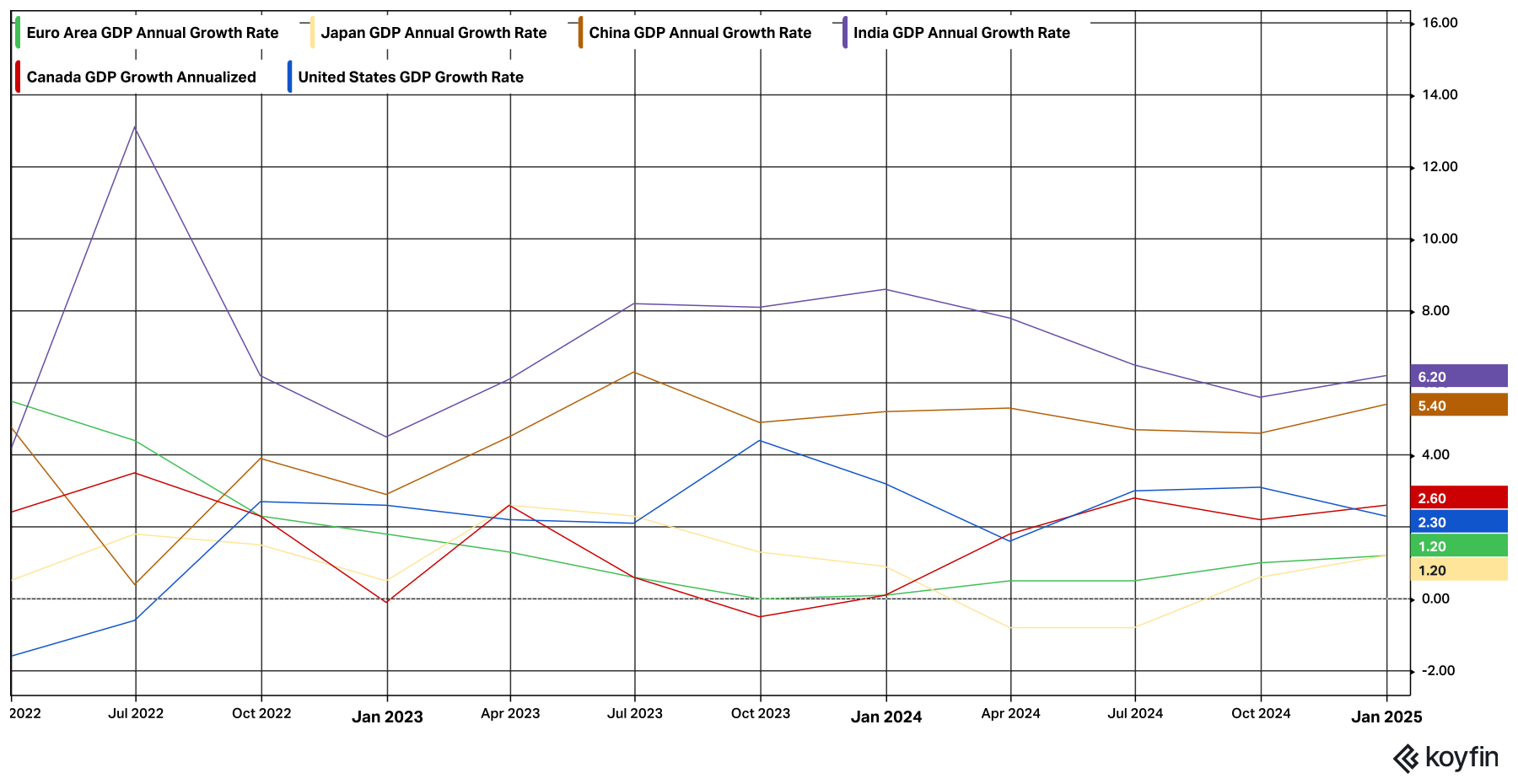 Economy Tariffs The United States has implemented direct tariffs on China, Canada, and Mexico. In the coming months, we will need to examine the economic impact the tariffs, and retaliatory tariffs have on all countries involved. The Trump administration has also added tariffs on steel and aluminum imports and plans to impose “reciprocal” tariffs on specific goods from countries that have a trade deficit with the United States. • 20% tariff on Chinese goods. China has responded with retaliatory tariffs • 25% tariff on Canadian Goods (temporary reprieve on United States-Mexico-Canada Free Trade agreement covered goods until April 2nd). Canada has responded with retaliatory tariffs • 25% tariff on Mexican Goods (temporary reprieve on US, Mexico, Canada Free Trade agreement covered goods until April 2nd) • 25% tariff on all steel and aluminum imports into the United States. Canada and the European Union have responded with retaliatory tariffs • United States “Reciprocal” Tariffs to be implemented on April 2nd Global Economic Growth Rates Prior to implementation of United States Trade War In the fourth quarter of 2024 the Canadian economy picked up pace, with the GDP growth rate increasing to 2.60%. The United States GDP growth rate slowed to 2.3% in the same period. The Eurozone economy grew at an improved 1.2% GDP growth rate. The Chinese economy sped up with a 5.4% GDP growth rate. Japan’s economic growth has also improved with a GDP growth rate of 1.20%. After a drop in economic growth in India over the last year, its GDP growth rate is beginning to increase again at 6.2% ![]() United States The U.S. generated 151,000 jobs in February while the unemployment rate increased from 4.0% to 4.1%. In a sign that consumers have begun cutting back on spending, U.S. monthly retail sales declined by -0.9% in the latest month of data. On March 17th we will get fresh U.S. monthly retail sales data and further evidence to determine the health of the U.S. consumer. Last month the U.S. inflation rate fell from 3.0% to 2.8%. In the coming months we will continue to monitor the impact of tariffs on inflation. The U.S. Federal Reserve is expected to maintain rates at 4.5% during their interest rate meeting on March 19th. Canada Canada generated a minimal 1,100 jobs, in February, while the unemployment rate remained unchanged at 6.6%. Retail sales in Canada declined in January to -0.4%, after showing very strong growth of 2.5% in December. Canada’s retail spending for the month of February will be released on March 21st. In anticipation of downward economic pressure due to United States tariffs, the Bank of Canada reduced overnight interest rates by 0.25% on March 12th. Overnight interest rates are now 2.75% in Canada. Markets North American stock markets declined during the month of February due to concerns over the expected negative economic impact of American tariffs. Last month, the U.S. Market (S&P 500) was down -1.87% while the Canadian market (S&P/TSX Composite Index) was down marginally -0.1%. The U.S. Nasdaq Composite index which contains a high weighting of technology related stocks was down -4.49%. The German stock market was up 5.23%. North American market volatility is expected to continue over the coming weeks as the United States continues to impose import tariffs on additional countries. April 2nd is the date announced by the Trump administration for the introduction of the next round of tariffs. ![]() |