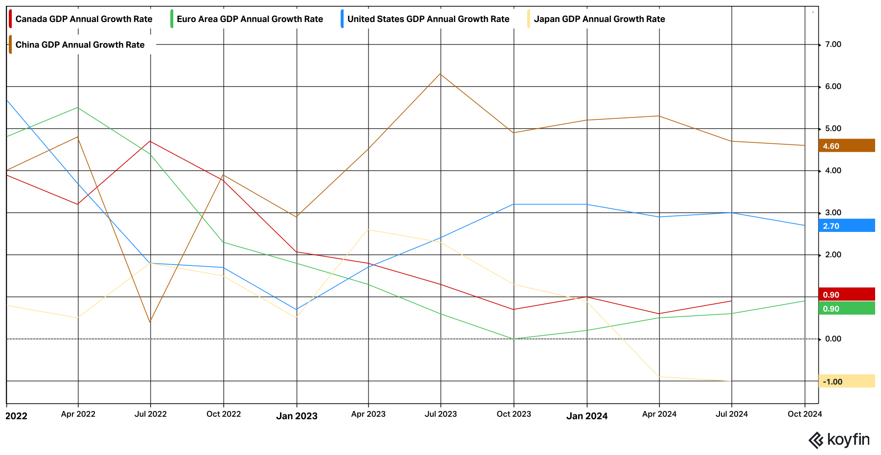 ![]() Monthly Market Analysis November 2024 Global Economy Where Do We Go from Here? In a global environment where most of the world’s central banks are cutting interest rates, inflation is trending downward, and economies are showing signs of rebounding. What can we expect next? Even with ongoing and developing, geopolitical headwinds, we expect the global economy to continue to rebound. As shown in the chart below: The U.S. continues to maintain a strong annual growth rate of 2.7%. Canada continues to stay out of recession territory with a 0.9% annual growth rate. The Eurozone economy has been rebounding from stagnancy and is seeing some marginal improvements in annual growth rate currently at 0.9%. China has seen a slowdown in economic growth bringing its annual growth rate to 4.6%, with no recent positive improvements. Japan’s economy fell into rapid decline and is currently experiencing a -1.0% annual growth rate. ![]() United States The American economy had another strong showing of quarterly economic growth in the third quarter of 2024 as GDP grew by 2.8%. In September, the U.S added 234,000 jobs (revised), but recently released employment data (on November 1, 2024) showed that there were only 12,000 additional jobs generated in October. During the month of October hurricane activity across the U.S. may have negatively impacted the employment data, but we will get more insight when the U.S. Bureau of Labour Statistics releases November’s employment results on December 6th. American consumers continue their robust spending patterns as retail sales moved up 0.4% in last month’s release by the U.S. Census Bureau. U.S. inflation continues to drift downward, although the pace of decline is slower than Canada and many European countries have experienced. Last month, consumer inflation fell from 2.5% to 2.4% in the United States. Canada In the second quarter of 2024 the Canadian economy grew by 0.5%. Economists are expecting a slight improvement in growth in the third quarter to an estimated 0.6%. The pace of Canada’s economic growth as measured by the Quarterly GDP Growth Rate will be released by Statistics Canada on November 29th. Canada has seen an improvement in job growth over the last two months with 46,700 additional jobs in September, and 22,100 additional jobs in August. Inflation continues to fall in Canada. In September inflation fell from 2.0% to 1.6%. Falling inflation and a weaker economy provided the impetus for the Bank of Canada to reduce interest rates by 0.5% last month. Canadian consumers continue to open their wallets. Retail sales improved by 0.4% in August, which is the third consecutive month of growth. Maybe we’re going to have a good Christmas, after all. Markets Last month the Canadian (S&P/TSX Composite Index) stock market was up by 0.65%, while the U.S. (S&P 500 Index) equity market was down -0.99%. The Chinese market (Shanghai Composite Index) was down -1.70% and the German market (Dax 30 Index) was down -1.28%. Last month’s stock market volatility was driven by concerns about decreased profitability expectations for U.S. companies, as well as speculation about unfavourable economic outcomes based on which presidential candidate wins the U.S. election. Global Stock Markets (October 2024) ![]() On Thursday, November 7th the U.S. Federal Reserve is highly anticipated to lower interest rates by 0.25%. The news conference after the interest rate announcement will likely drive market activity for several days as investors speculate on the path of future rate cuts. The U.S. Election on November 5th will also have a temporary impact on market activity. Investors will try to determine the impact that the Elections’ outcome will have on the U.S. and the global economy. The real impact of the U.S. Election results and its corresponding policy outcomes on the global economy, will be felt over the coming months and years. Although, the U.S. markets usually respond positively over time; whichever U.S. political party is in power. 1 (Source: Bank of Canada) 2(Source: Statistics Canada) 3(Source: United States Bureau of Labour Statistics) 4(Source: United States Federal Reserve) 5(Source: United States Census Bureau) 6(Source: Koyfin as of October 31, 2024, 5:00 PM) ![]() Desmond Rubie, BCom, CIM®, CFP® Wealth Advisor Rubie Wealth Management Group | iA Private Wealth Insurance Advisor | iA Private Wealth Insurance* 26 Wellington Street East, 2nd Floor Toronto, ON M5E 1S2 T: 647-429-3281 ext. 240018 Desmond.Rubie@iaprivatewealth.ca Schedule a Meeting rubiewealth.com *This information has been prepared by Desmond Rubie, BCom, CIM®, CFP®, who is a Wealth Advisor for Rubie Wealth Management Group at iA Private Wealth. Opinions expressed in this article are those of Desmond Rubie, BCom, CIM®, CFP® only and do not necessarily reflect those of iA Private Wealth Inc. *IA Private Wealth Inc. is a member of the Canadian Investor Protection Fund and the Investment Industry Regulatory Organization of Canada. iA Private Wealth is a trademark and business name under which iA Private Wealth Inc. operates. |